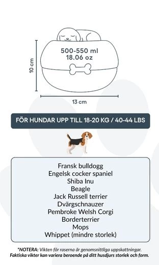 Veelvoorkomende rassen die passen: Beagle, Shiba Inu, Franse Bulldog, Boston Terriër, Dwergpoedel, Cavalier King Charles Spaniël, Basenji, Miniatuur Australian Shepherd, Cocker Spaniël, Welsh Terriër.