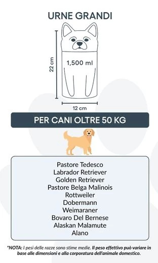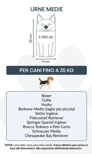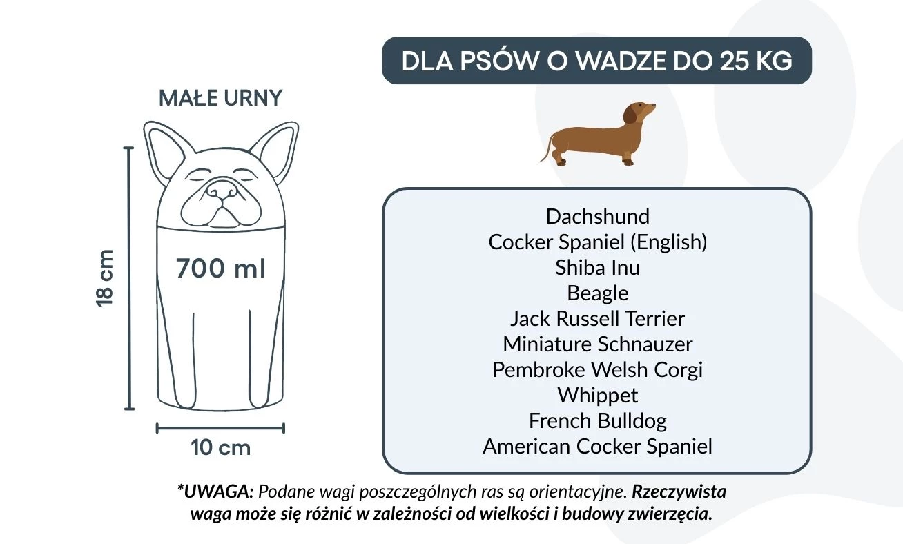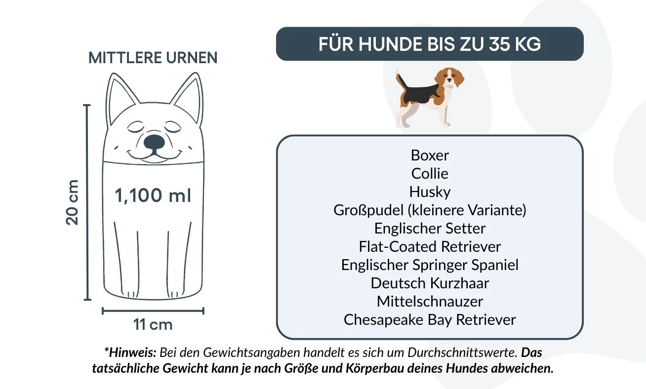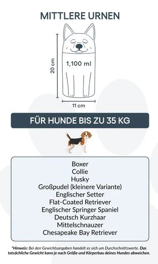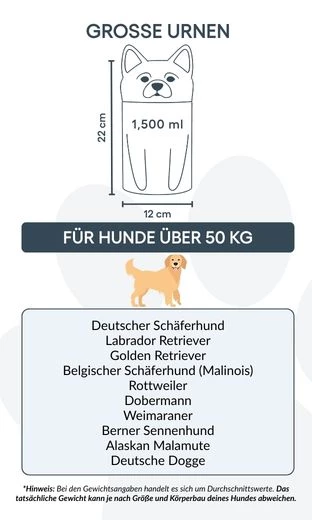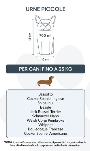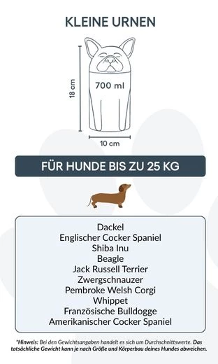 Let op: de inhoudsindicatie is gebaseerd op gemiddelde crematievolumes. Houd rekening met het gewicht en de bouw van je huisdier bij het kiezen van de juiste urn.