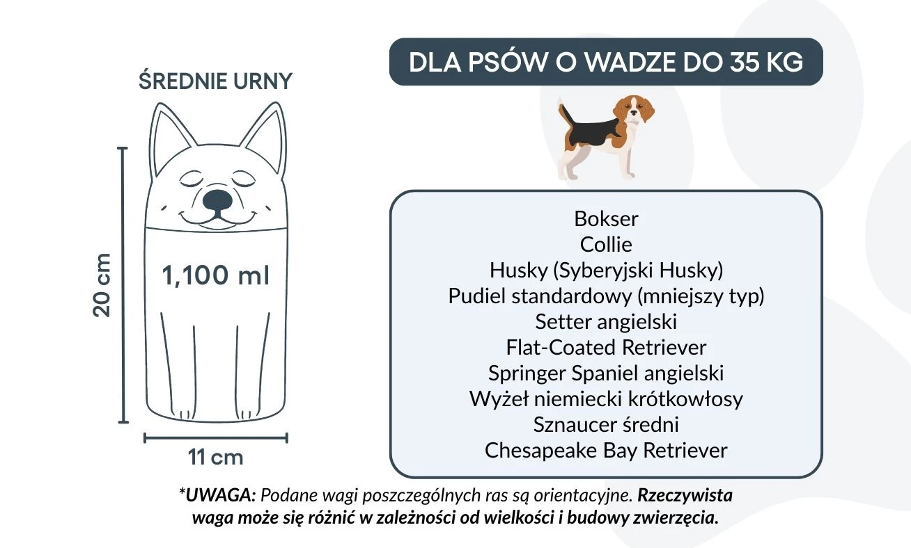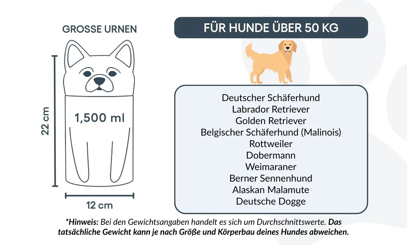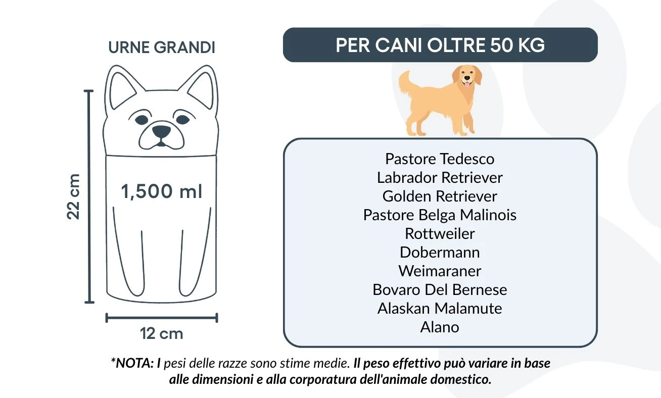 Let op: de inhoudsindicatie is gebaseerd op gemiddelde crematievolumes. Houd rekening met het gewicht en de bouw van je huisdier bij het kiezen van de juiste urn.