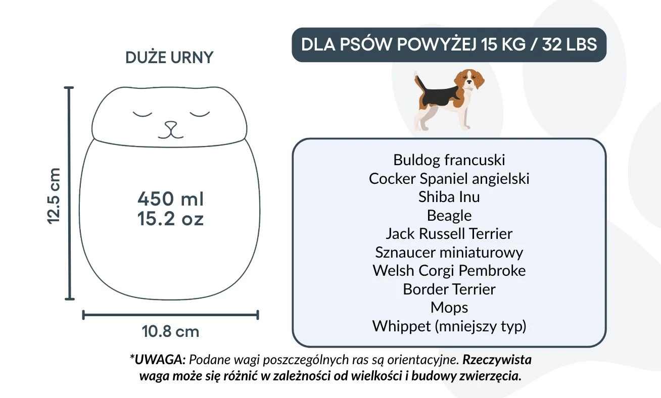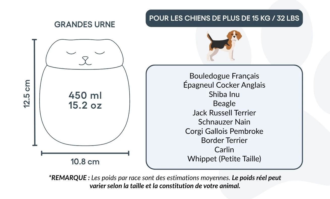 Vakkundig vervaardigd van glad, hoogwaardig keramiek, combineert deze gepersonaliseerde hondenurn elegantie met functionaliteit. Het goed sluitende deksel zorgt ervoor dat de as veilig bewaard blijft, terwijl het rustgevende ontwerp warmte en sereniteit toevoegt aan elke binnenruimte. Het slapende hondje op het deksel symboliseert vrede en liefde – een passend eerbetoon aan een trouwe vriend.