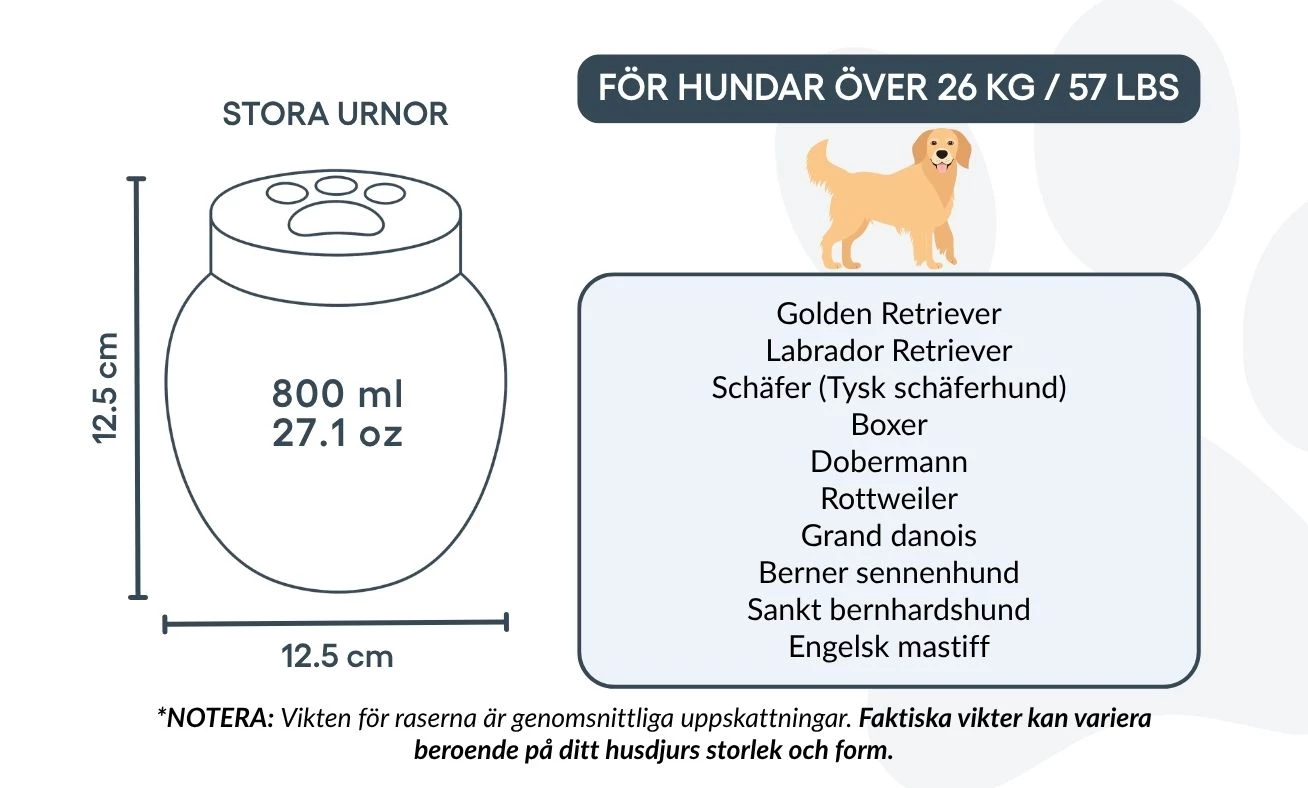 Met volledige personalisatie-opties kun je deze urn aanpassen aan het unieke verhaal van je hond – want elke herinnering verdient een speciale plek.