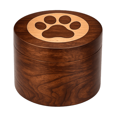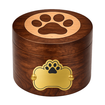 Met zijn compacte formaat is deze gegraveerde houten urn ideaal voor honden tot 8 kg. Of ze nu op een plank, dressoir of in een persoonlijke herinneringshoek staat, deze urn vormt een blijvend aandenken aan het leven van een trouwe metgezel.