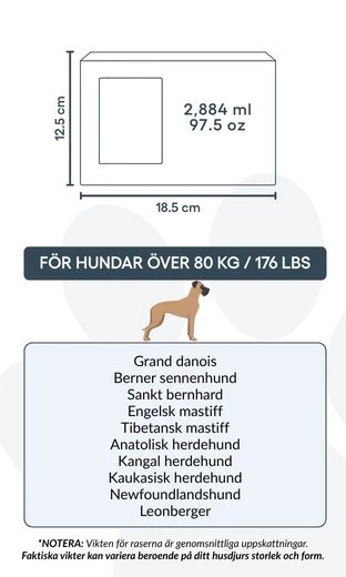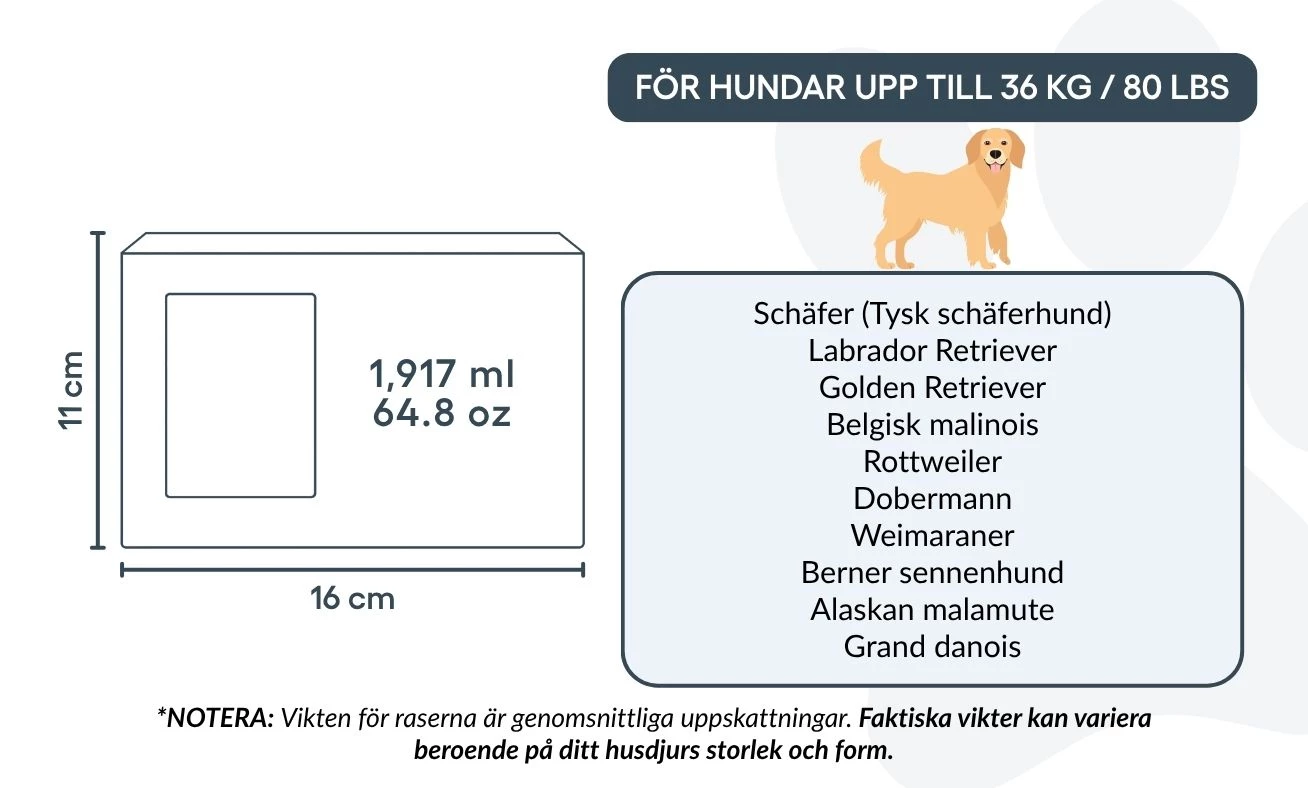 Afmeting: 16 cm (B) × 11 cm (H) × 11 cm (L) | 1.917 ml / 64,8 oz | Voor huisdieren tot 36 kg / 80 lbs