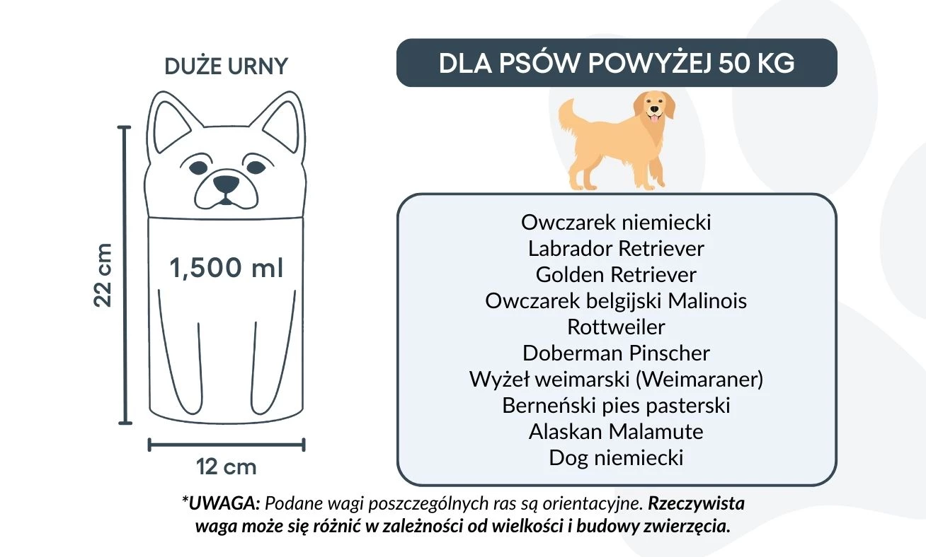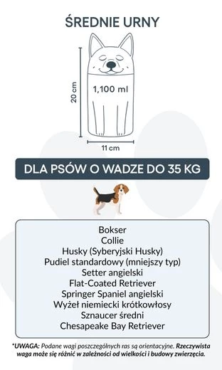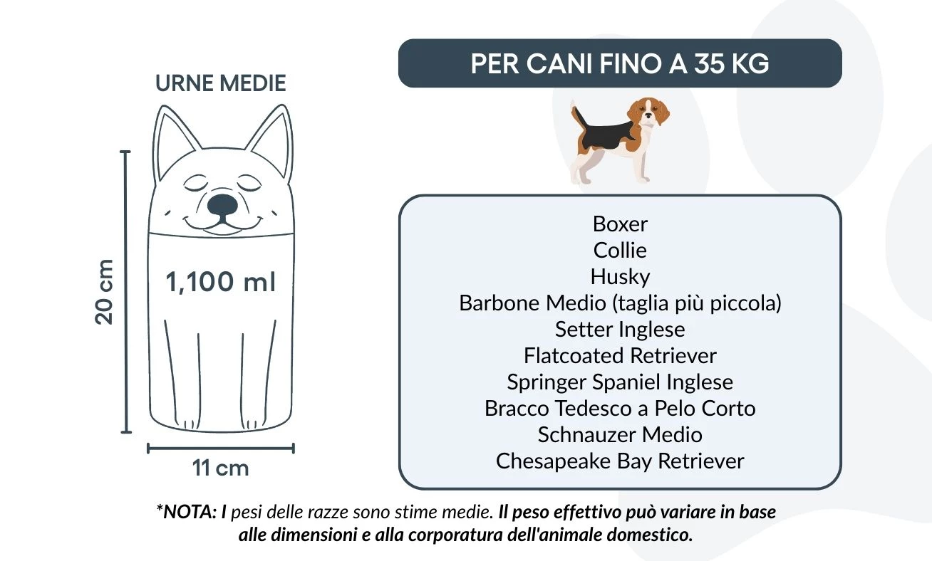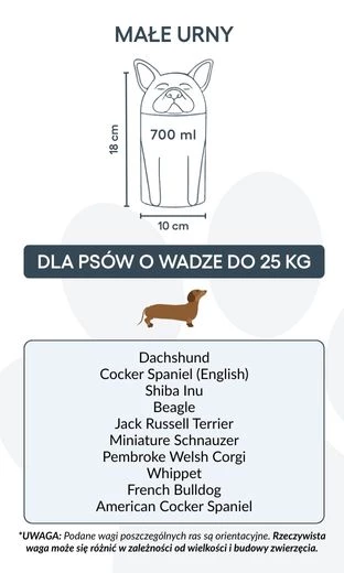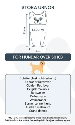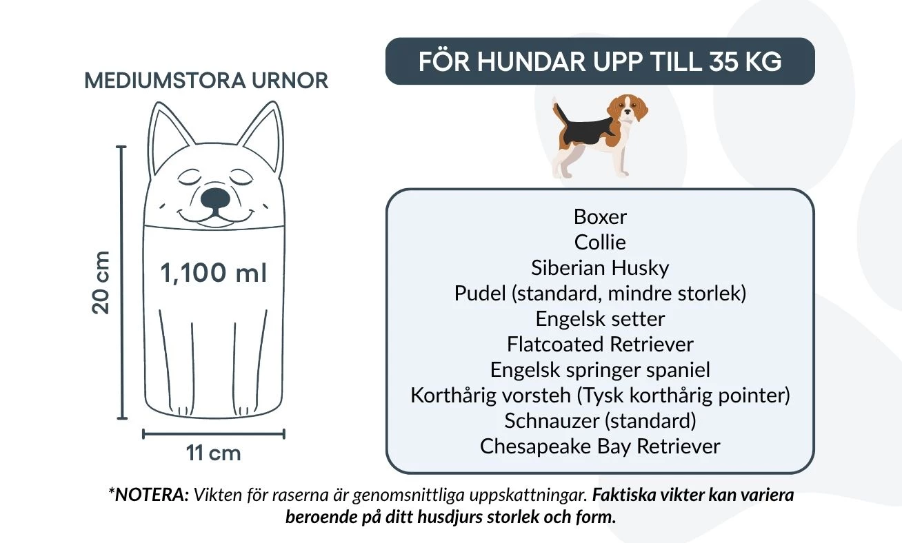 Let op: de inhoudsindicatie is gebaseerd op gemiddelde crematievolumes. Houd rekening met het gewicht en de bouw van je huisdier bij het kiezen van de juiste urn.
