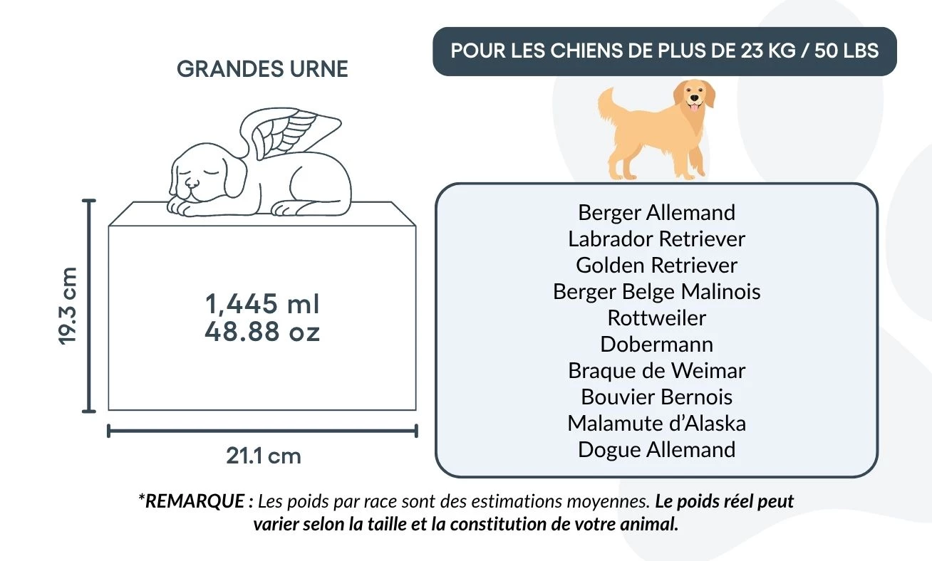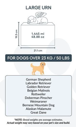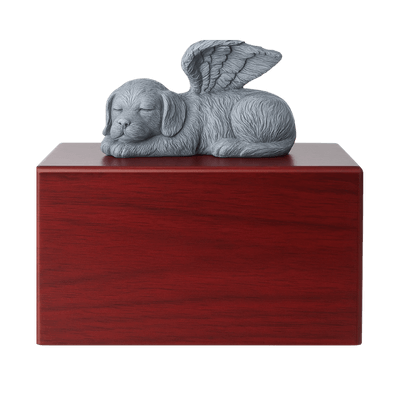 Personalised Wooden Dog Urn Box with Angel Dog Statue – Pet Cremation Urn for Ashes with Name, Dates & Tribute